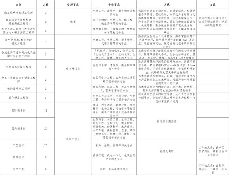 招聘单位:安琪酵母股份有限公司